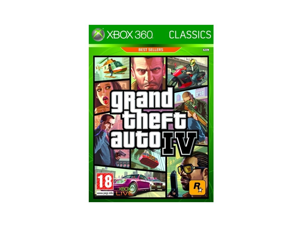Xbox 360 Grand Theft Auto IV (GTA IV) je populární hra vytvořená Rockstar North a vydaná Rockstar Games. Hra byla původně vydána pro Xbox 360, PlayStation 3 a později i pro PC v roce 2008.