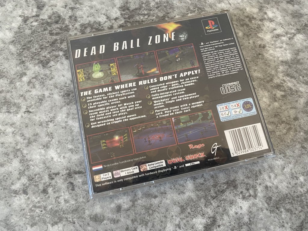 DBZ: Dead Ball Zone is an action sports game developed by THQ and published by PlayStation in 1998 for the PlayStation 1 (PS1) game console. The game is set in a futuristic world where players compete in a brutal sports match that combines elements of football and fighting games.