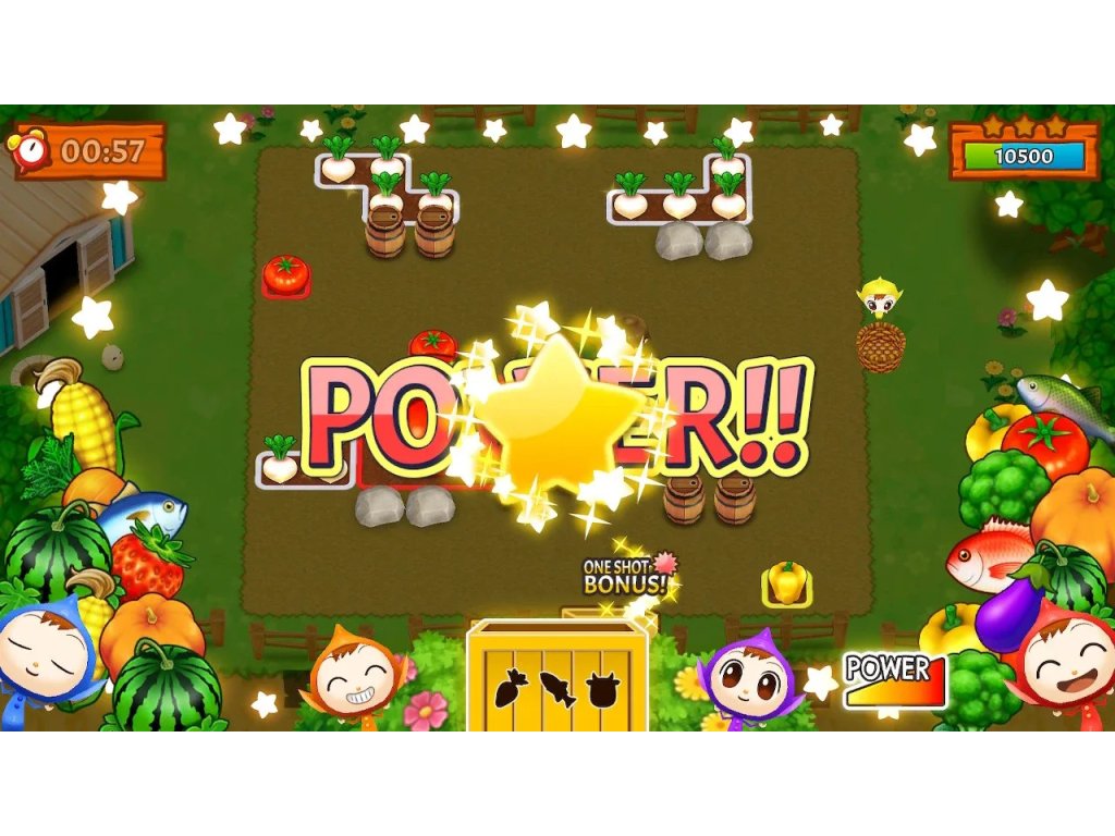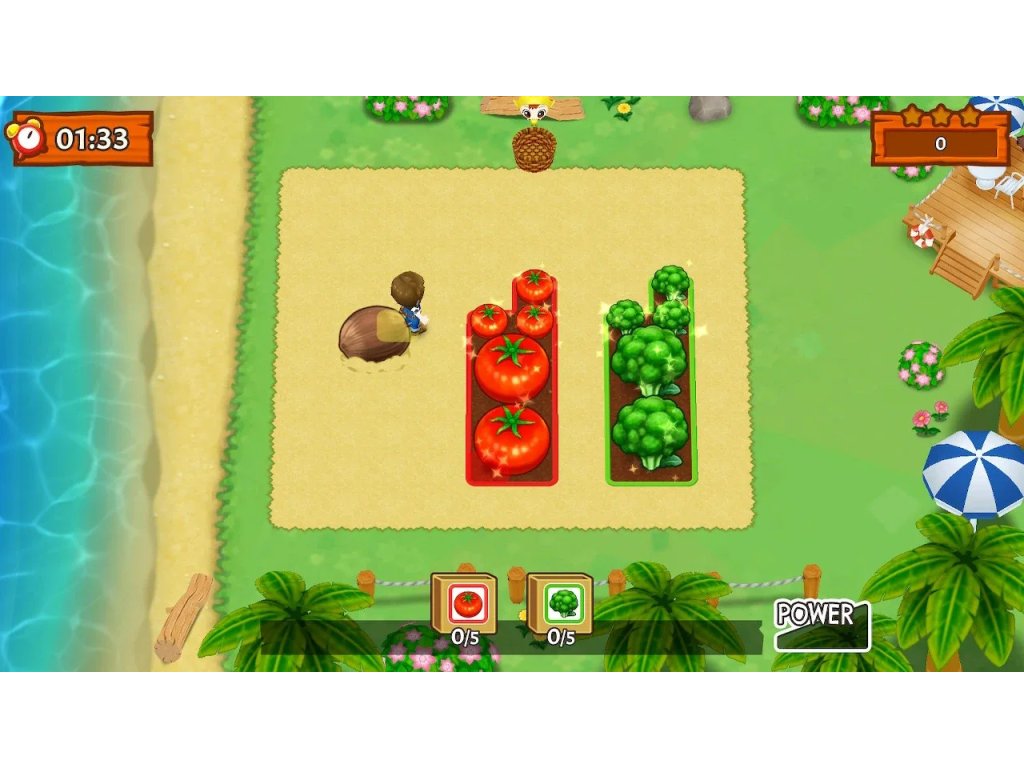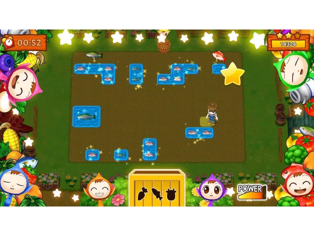 In Harvest Moon: Mad Dash, players find themselves in fast-paced and hectic farming situations. The main goal is to collect crops, raise animals and complete tasks as quickly as possible. The game supports co-operative play for up to four players, allowing you to work together with friends and increase your efficiency during tasks.