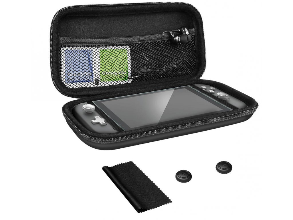 Špičková sada pro hraní na cestách pro Nintendo Switch Lite. Chraňte konzoli pomocí odolného pouzdra, chrániče obrazovky, her a kabelů a bezpečně je uložte do vnitřní kapsy. Vylepšete své hraní ještě více pomocí stereofonních ušních špuntů a dvou tvarovaných silikonových kloboučků na palce.