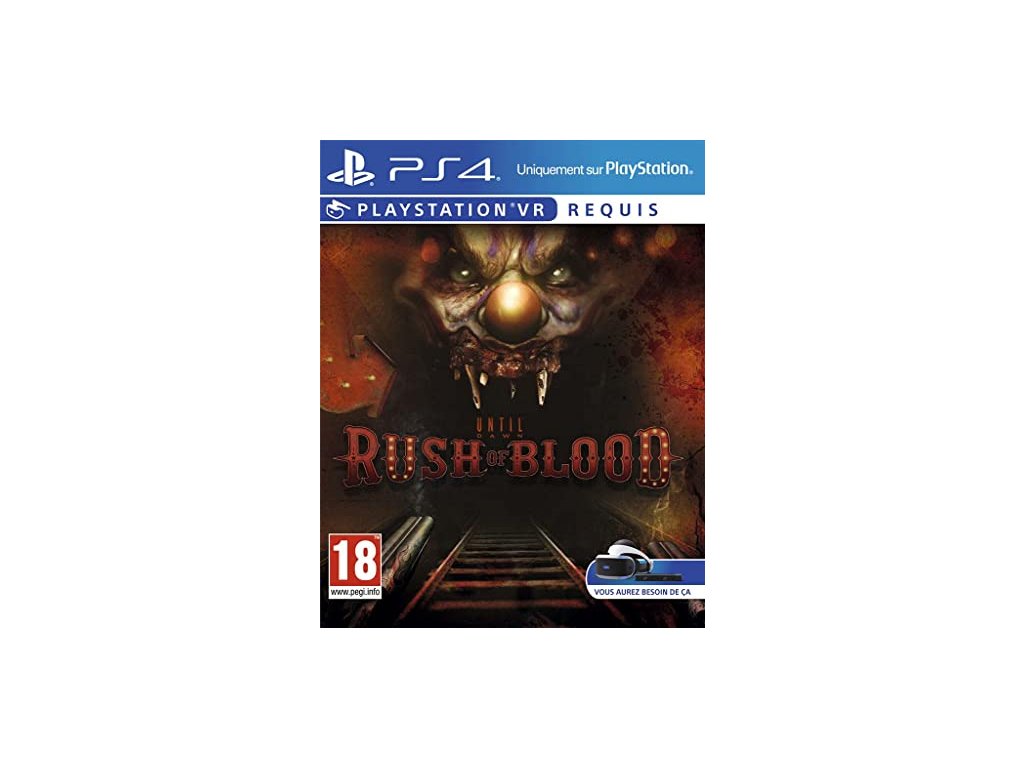 Until Dawn: Rush of Blood pro PS4 je hororová VR střílečka zasazená do světa série Until Dawn. Hru vyvinulo studio Supermassive Games a je určena pro zařízení PlayStation VR na konzoli PlayStation 4.