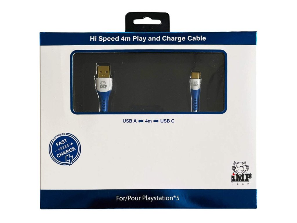 IMP Tech 4m High Speed Fast Charge Cable pro PS5 je extra dlouhý a kvalitní nabíjecí kabel určený pro ovladače konzole PlayStation 5.