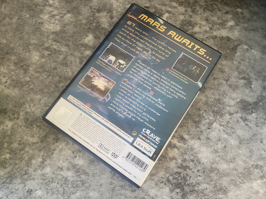 Armored Core 2 pro PlayStation 2 je akční mech simulátor od studia FromSoftware a přímé pokračování původní série z konzole PlayStation. Hra hráče zavádí do budoucnosti, kdy se lidstvo přesunulo na Mars a bojuje o nadvládu mezi korporacemi. Jako „Raven“, pilot obřího bojového robota zvaného Armored Core, plníte různé zakázky pro soupeřící frakce, přičemž volba mise ovlivňuje vaše odměny, reputaci a přístup k novému vybavení.