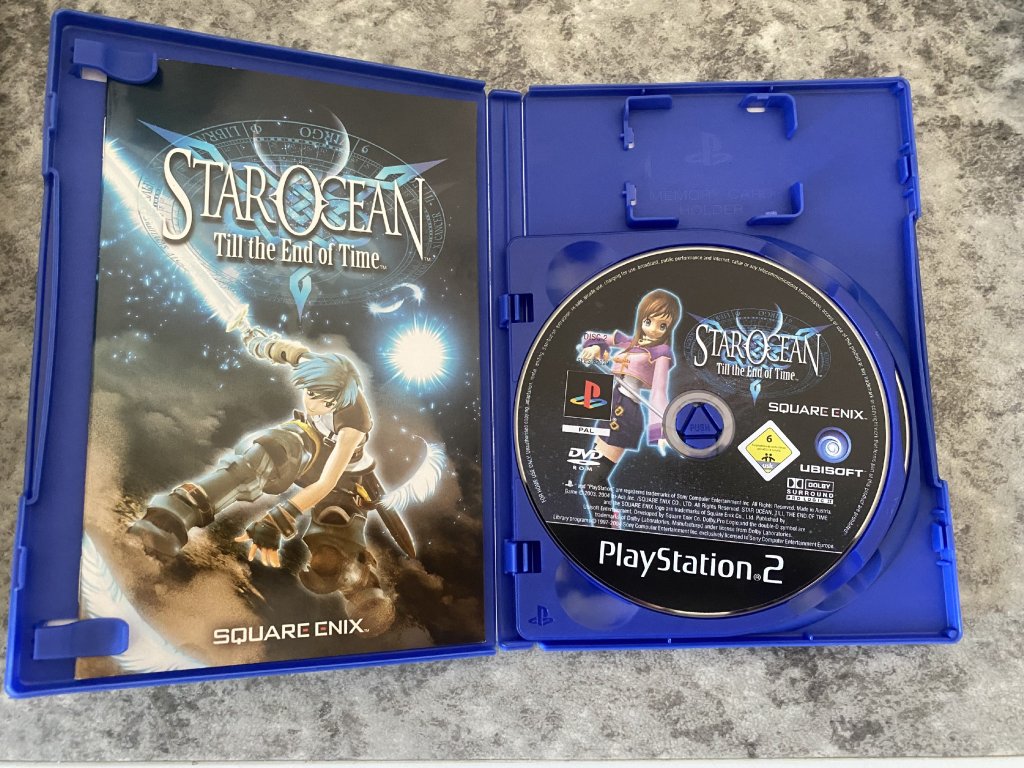 Star Ocean: Till the End of Time pro PlayStation 2 je rozsáhlé akční JRPG od studia tri-Ace a Square Enix, zasazené do sci-fi světa s fantasy prvky. Hráč se ujímá role Fayta Leingoda, mladíka, který se po útoku na rekreační planetu ocitá v neznámé části vesmíru a postupně je vtažen do konfliktu, jenž dalece přesahuje jeho vlastní osud. Hra nabízí bohatý příběh plný zvratů, propracované postavy a svět, který kombinuje technologicky vyspělá impéria s klasickými fantasy planetami. Vše doplňuje filozofický přesah o realitě, existenci a lidské svobodě.
